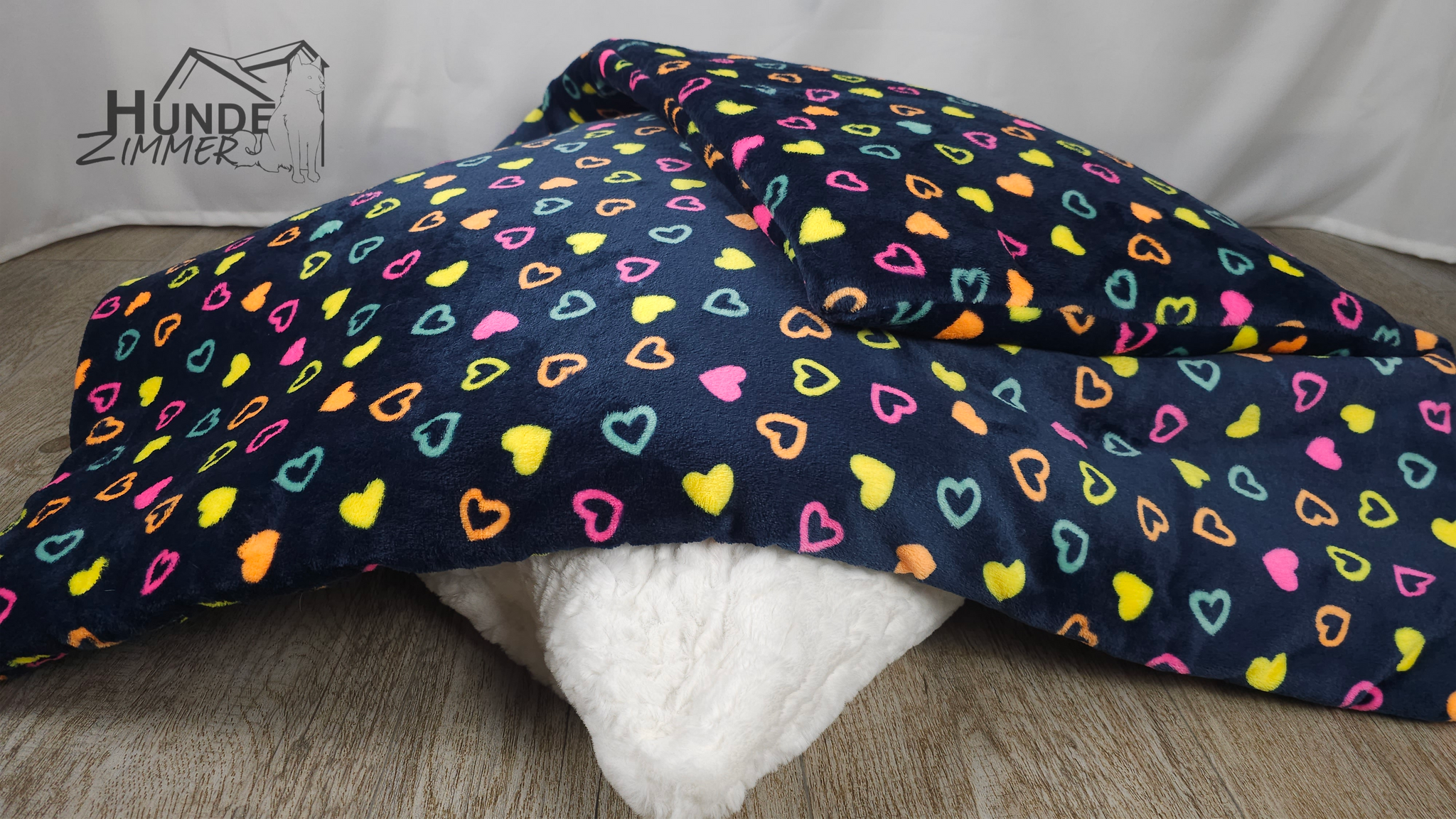 Diese Kuschelfleece-Hundedecke mit ihren bunten Herzchen auf tiefem Dunkelblau bringt sofort gute Laune in jede Hunde-Ecke! Superweich, farbenfroh und perfekt zum Einkuscheln nach großen und kleinen Abenteuern. Für alle Fellnasen, die wissen: Herzen machen jeden Tag ein bisschen schöner! 💛💙💗