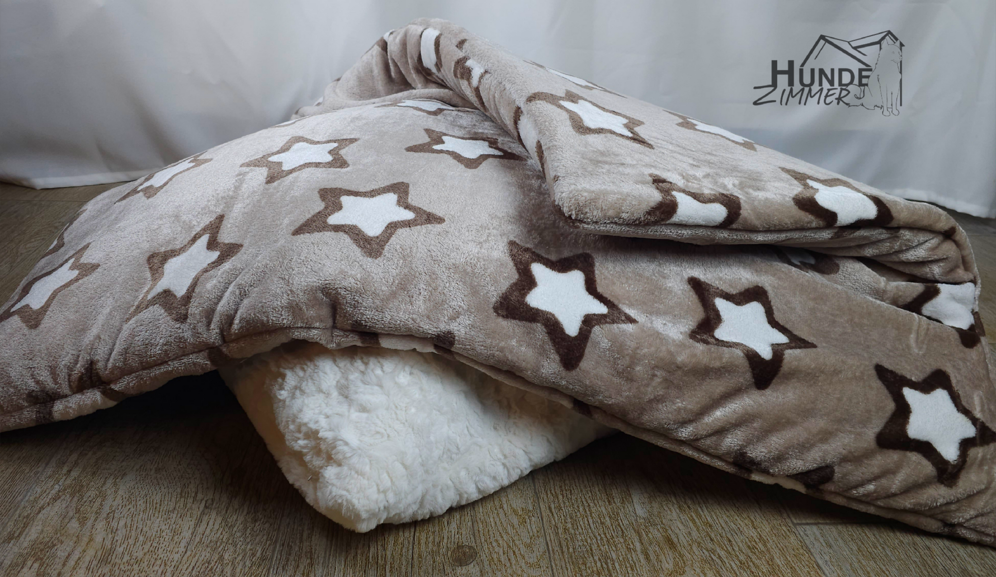 Unsere Kuschelfleece-Hundedecke in zartem Beige mit verspielten Sternen bringt himmlische Gemütlichkeit in jede Hunde-Ecke! Superweich, kuschelig und perfekt zum Einkuscheln – für alle Fellnasen, die unter Sternen träumen und es gemütlich lieben. Sternenglück für kleine und große Trendsetter auf vier Pfoten!